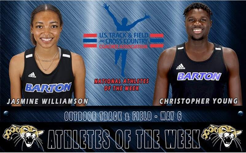 GREAT BEND, Kan. (BartonSports.com) – Jazmine Williamson and Christopher Young of the Barton Community College track and field program have been named the U.S. Track & Field and Cross Country Coaches Association (USTFCCCA) Outdoor Women and Men’s National Junior College Athletic Association (NJCAA) Athletes of the Week.