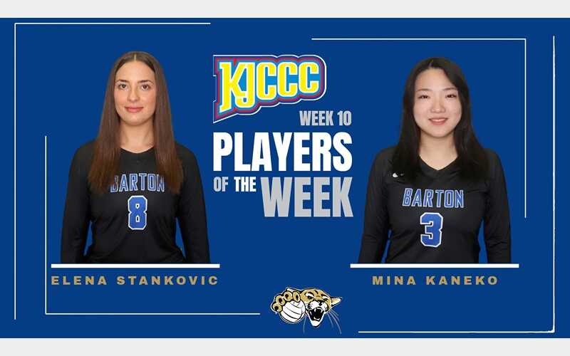 GREAT BEND, Kan. (BartonSports.com) – Elena Stankovic and Mina Kaneko of the 9th ranked Barton Community College volleyball team have each received KJCCC honors from week eleven performances.