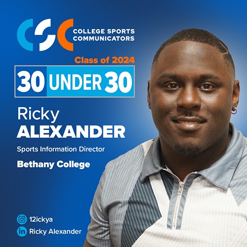 LINDSBORG, Kan. (BethanySwedes.com) – College Sports Communicators has announced that Bethany College’s very own Ricky Alexander has been named to the 30 under 30 class of 2024.