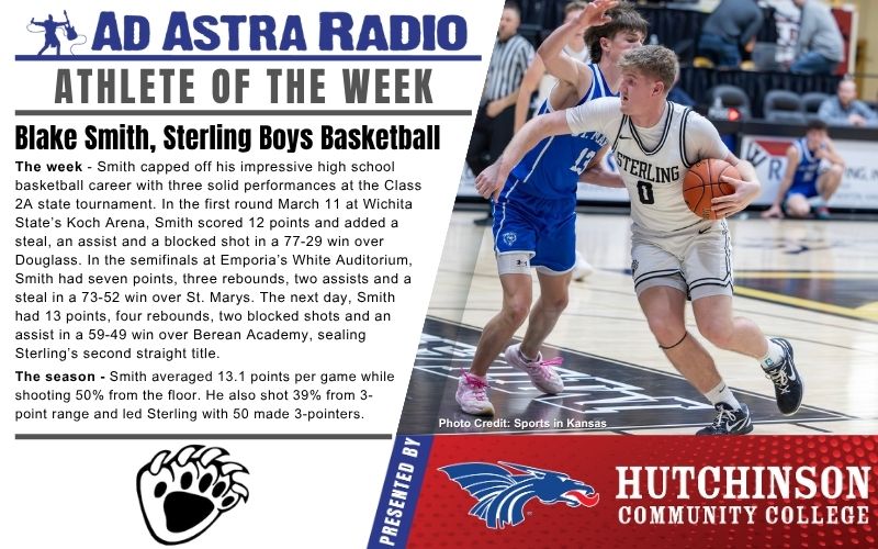 Ad Astra Radio is proud to announce Sterling High School senior Blake Smith as this week’s Athlete of the Week, presented by Hutchinson Community College.