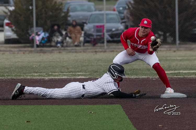 BUHLER, Kan. – Buhler baseball braved the elements to open the 2023 season Thursday Night in Wheatland Park. The Crusaders battled from behind twice to defeat rival McPherson, 8-7. Jeremy Gentry sprinted home to score the winning run on a passed ball with one out in the bottom of the seventh.