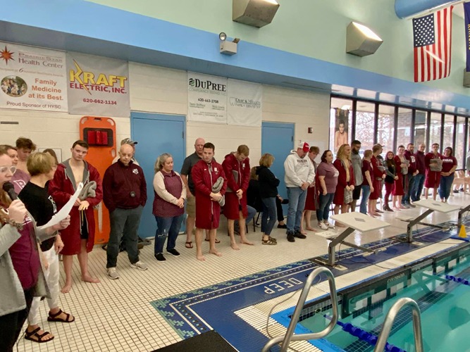 HUTCHINSON, Kan. – Buhler boys swimming and diving hosted its senior night meet on Tuesday at the Hutchinson Y. The Crusaders finished first out of seven teams who participated and set five new school records. Eight seniors competed in their final home meet.