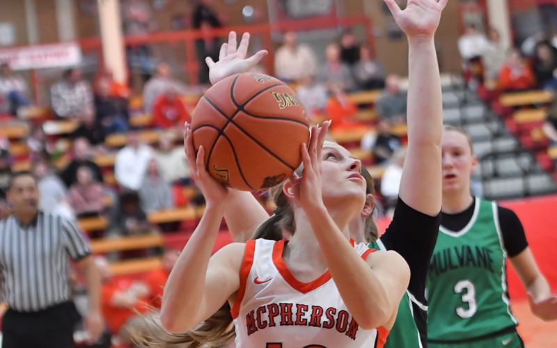 The Bullpups saw themselves up by double-figures early, thanks to terrific shooting by Brooke Doile and Maryn Sandbo, who combined to have 21 of the team’s 26 points at halftime. McPherson’s defense also held Winfield to only nine made baskets, five of which were in the fourth quarter with McPherson already leading by more than 20 points.