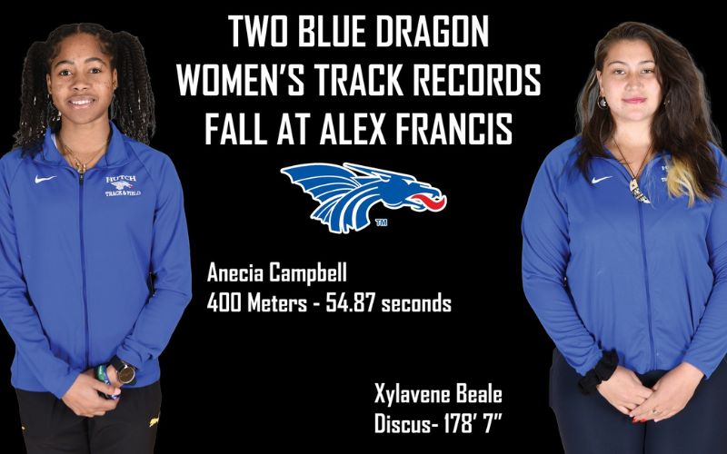Freshman Anecia Campbell broke the Blue Dragon record in the 400 meters and punched her ticket to the NJCAA Outdoor Championships. Beale broke her own record in the discus on Thursday, setting a new Hutchinson record for the 16th time in 2026.