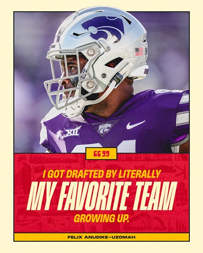 “Felix is a heck of a player. He’s also a KC native, so we appreciate that part of it, too,” coach Andy Reid said. “When you’re picking right there at 31, you take the best player available. He was that guy.”