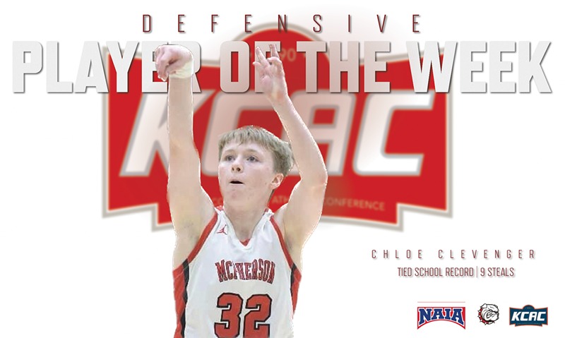 WICHITA, Kan. (MacBulldogs.com) – Freshman Chloe Clevenger has been named KCAC Defensive Player of the Week following a record setting performance in Friday’s season-opening win over Barclay College, the league announced Monday (Oct. 30).