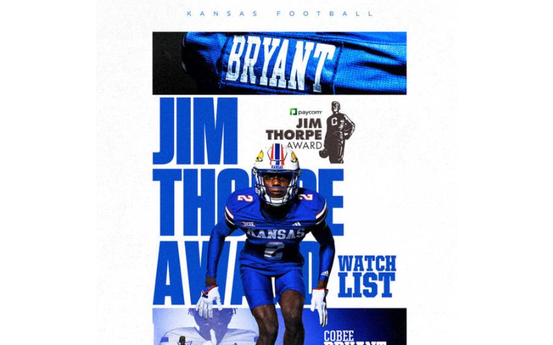 LAWRENCE, Kan. – The Oklahoma Sports Hall of Fame (OSHOF) and Jim Thorpe Association announced the prestigious Paycom Jim Thorpe Award Preseason Watch List on Thursday, which includes Kansas junior cornerback Cobee Bryant.