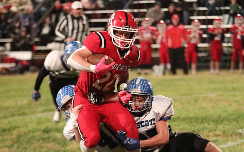Cunningham’s defense blanked a Tescott offense that had scored at least 50 points five times this season. The Wildcats had a pair of first-half defensive stops inside their 10-yard line, and they ended the half with a bang, when Logan Kinsler intercepted a pass and returned it 20 yards for a touchdown.