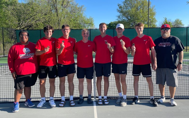 WICHITA, Kan. – Just two points would separate the Bullpup Tennis Team from the first place on Monday, as each McPherson entry was able to reach the semifinal in the AVCTL Div. III/IV Tournament.