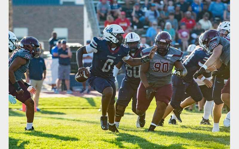 Sterling had 262 yards of total offense in the loss. It was a well-balanced attack with 144 yards in the air and 118 yards on the ground. Slocum took the majority of the snaps and he was 4-9 for 116 yards passing. The big throw to Stucky being the big play of his night. Rocklin Baptista was 6-8 for 28 yards as he split time with Slocum from the QB position. Baptista was also the leading rusher for the Warriors with 47 yards rushing. Stucky had a 100 yard game receiving with 3 receptions totaling an even 100 yards and a TD. Kendrick Bell was the workhorse RB for Sterling with 13 carries for 38 yards and the TD midway through the second quarter that gave Sterling the lead.