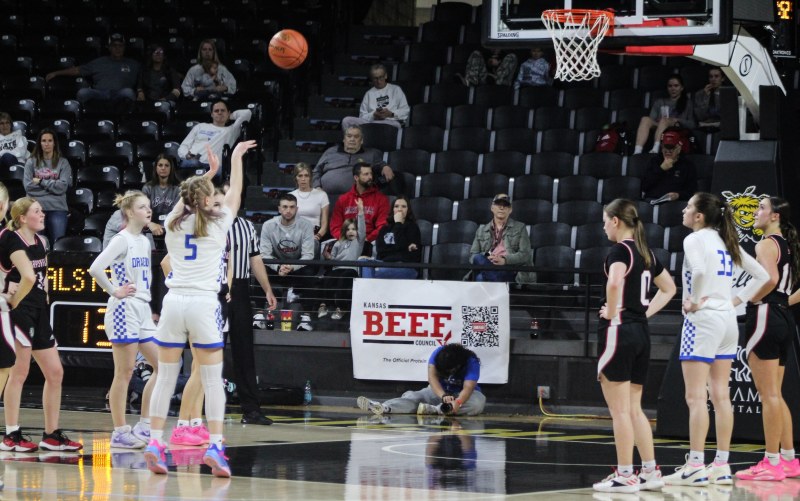 WICHITA, Kan. – The Halstead Dragons opened defense of their 3A Girls state title from 2025 on Wednesday afternoon at Charles Koch Arena. Despite trailing by seven early in the second quarter, they regrouped and made just enough plays down the stretch for a 3A State quarterfinal win over Marysville.