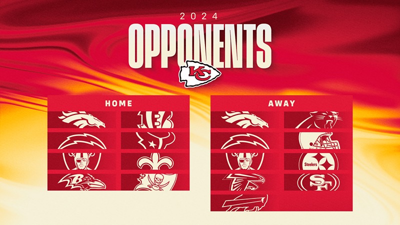 KANSAS CITY, Mo. – The Kansas City Chiefs are back-to-back world champions following their victory in Super Bowl LVIII, and with the goal of a three-peat now firmly in mind, we already know the Chiefs’ full slate of opponents in 2024.