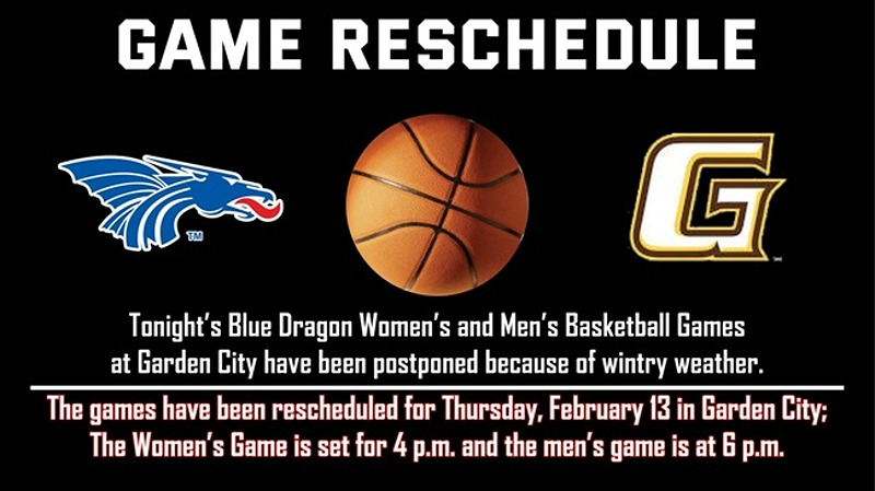 The latest snowstorm to hit Kansas on Tuesday night and early Wednesday morning has caused the postponement of the Blue Dragon women’s and men’s basketball games on Wednesday.