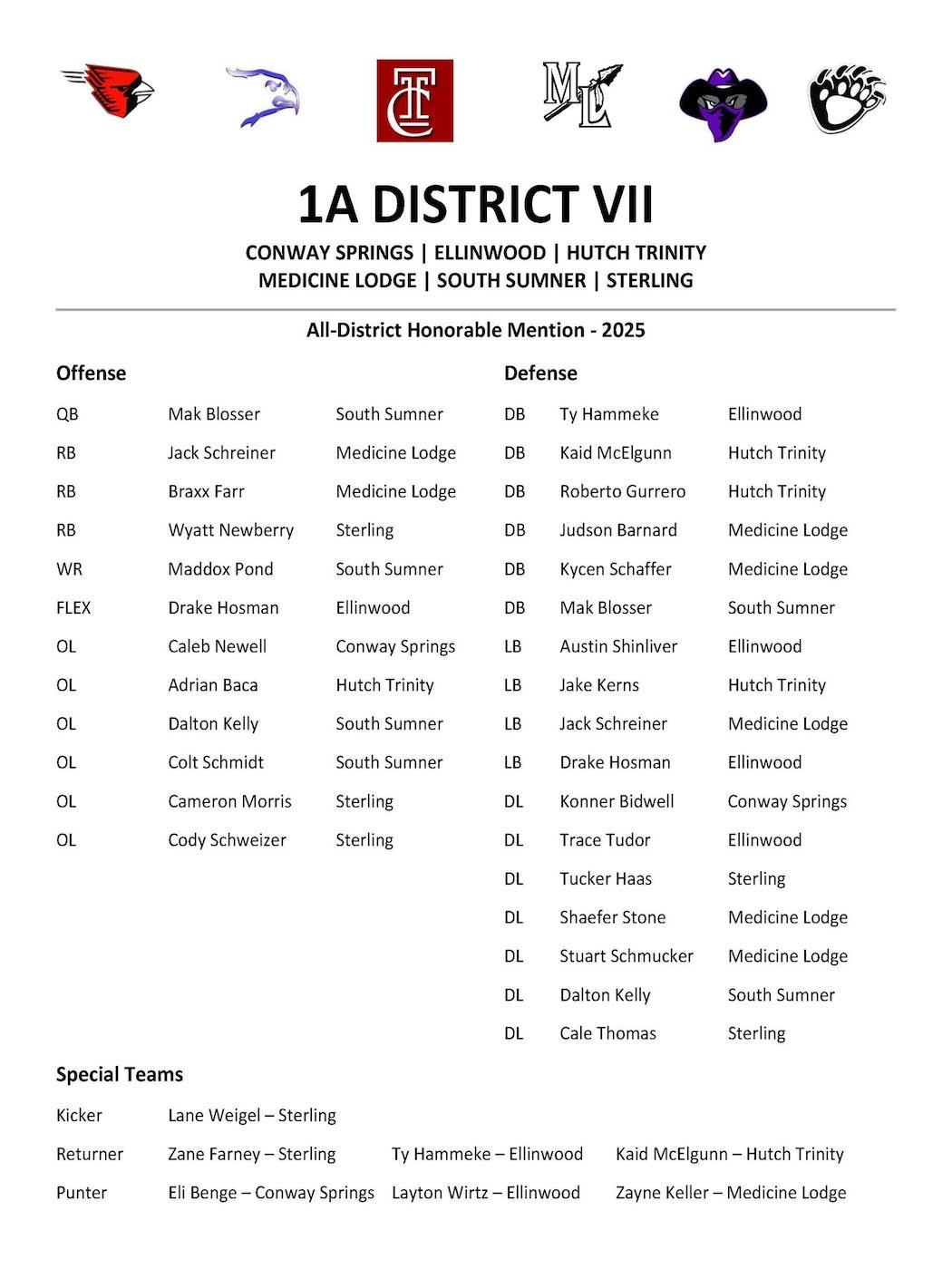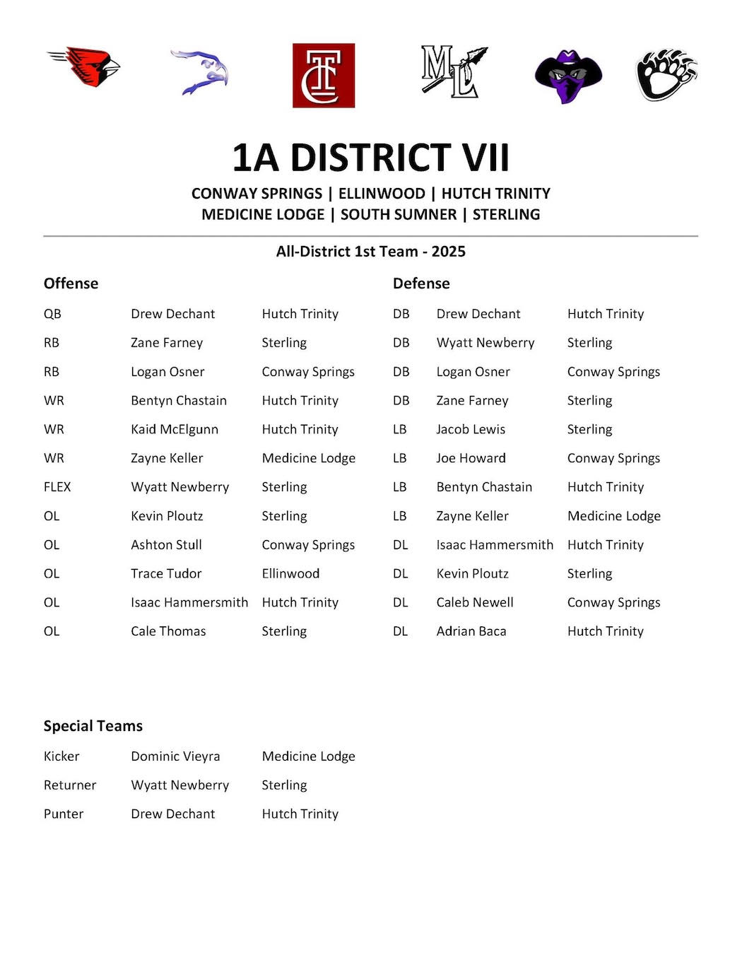 Hutchinson Trinity Catholic and Sterling dominated the Kansas Class 1A District VII Football Team released on Friday.