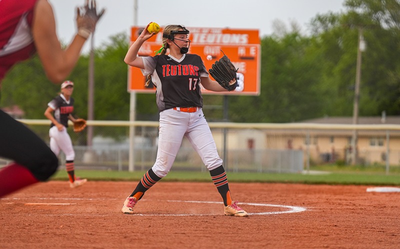 The Teuton baseball team won 9-7 (Game 1) and 4-3 (Game 2). The softball team won 7-0 (Game 1) and 23-1 (Game 2).