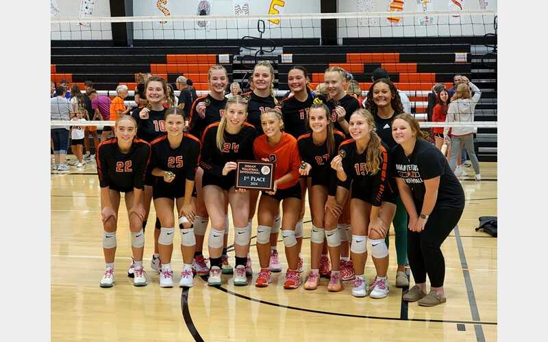 INMAN, Kan. – The Inman volleyball team is off to an outstanding start in 2024. Inman is ranked #1 in Class 2A by the Kansas Volleyball Association and after sweeping Centre and Canton-Galva at the Centre Mod Quad on Tuesday, September 3, they welcomed five schools to their annual invitational on Saturday. The Teutons made their way through the competition, finishing 5-0 and claiming the title in front of their home crowd. They only dropped one set on the day on their way to the championship in the round robin format. With their undefeated day, Inman is now 7-0 on the young season.