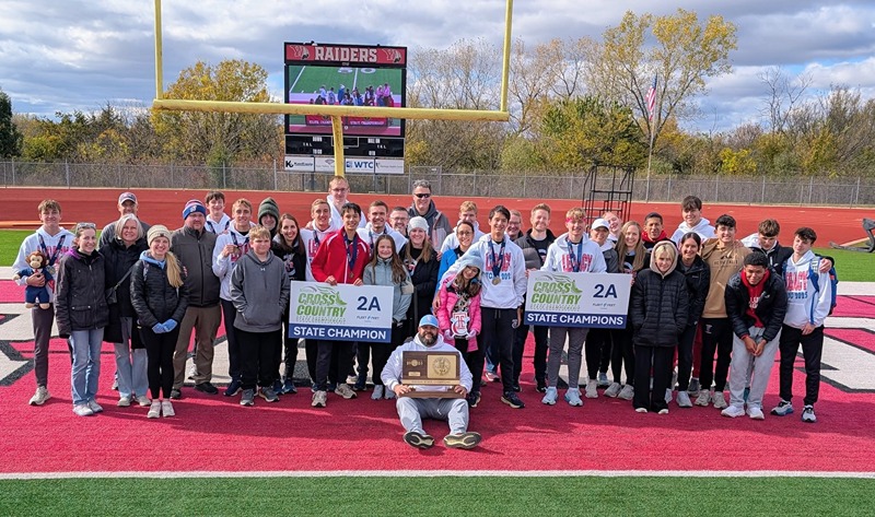 The Hutchinson Trinity Catholic High School boys cross country team edged out Kansas City Christian 61-66 for the Kansas Class 2A boys state team title Saturday at the Wamego Country Club.
