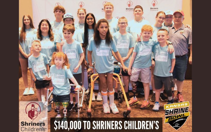 The Shrine Bowl of Kansas, Inc. Board of Directors is proud to announce a 2025 donation of $140,000 to benefit Shriners Children’s. The net proceeds generated by the success of the organization’s 2025 events, the 52nd Kansas Shrine Bowl presented by Mammoth and the 2nd KWCA Kansas Shrine Duals, are made possible by the generosity and efforts of many. The Shrine Bowl of Kansas, Inc. Board of Directors would like to extend their heartfelt thank you to all of the staff, participants, families, supporters, ambassadors, corporate partners, advertisers, volunteers, local hosts, and nobles across Kansas who have contributed in any fashion towards this remarkable contribution that will greatly impact the lives of the many Kansas children and families who receive care at Shriners Children’s.