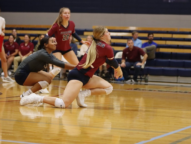 Aubrey Young continues to thrive in this 5-1 offense racking up another 47 assists in the 5 set win. She is averaging over 45 assists/game over the last three games, the most of any three game stretch of her career. She also added 30 digs to go along with her offensive performance. Emily Peterson had a career high 20 kills in the match. Lindsey Kauffman, once again, led the Warrior back row with 33 digs; a performance that earned her the NCCAA Defensive Student-Athlete of the Week. Sterling is now 3-0 since she has moved to libero. Grace Battershell came off the bench to record 2 aces.