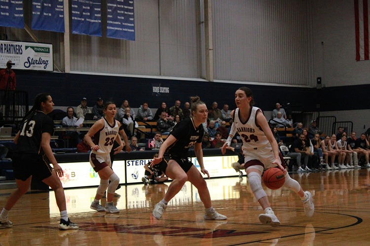 STERLING, Kan. (SCWarriors.com) – The Lady Warriors looked like they would run away with another victory, but a fourth-quarter comeback by the Ottawa University Braves made for an interesting night. Sterling was in control most of the night, thanks to a three-quarter court trapping defense. The Warriors got off to a slow start, but took the lead late in the first quarter, before extending their lead in the second quarter. At the half, the Warriors were up twelve, 44-32.