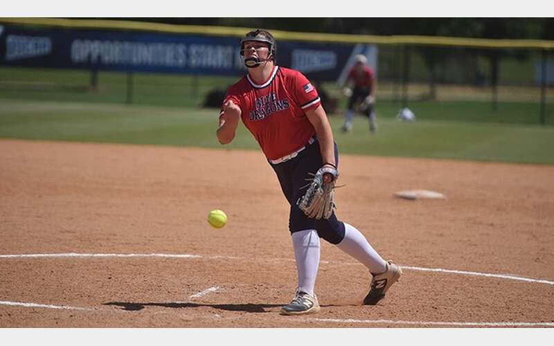 Powered by freshman Dakota Lake‘s two-hit complete-game shutout, the 15th-seeded Blue Dragons rolled to a five-inning run-rule 8-0 victory over No. 19 Connors State in an opening-round game on Field 4 at Choccolocco Park.