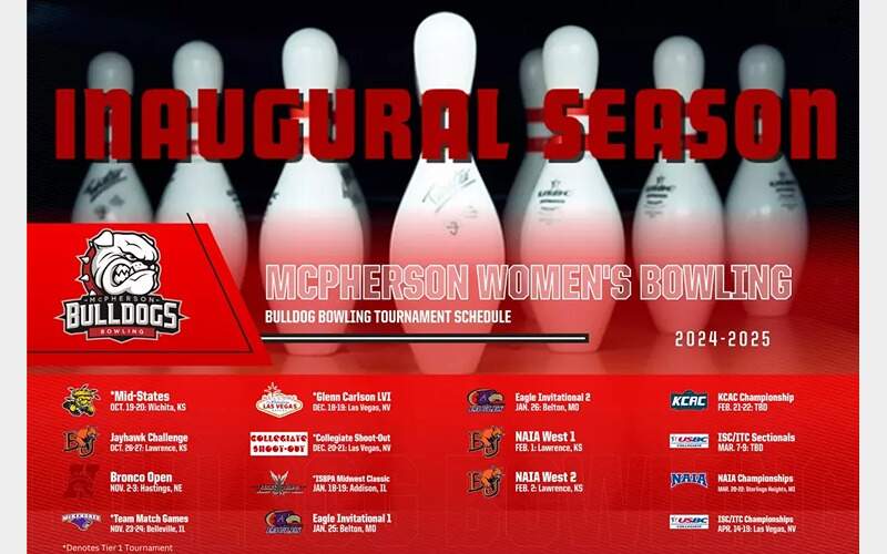 McPHERSON, Kan. (MacBulldogs.com) — The McPherson College Bulldogs women’s bowling squad announced the tournament schedule for their inaugural season Monday (July 29).
