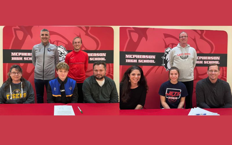 MCPHERSON, Kan. – McPherson High School held a signing ceremony for Jordan Sears and Tito Mendez on Wednesday, as they signed their Letter of Intent to continue their athletic career at the collegiate level.