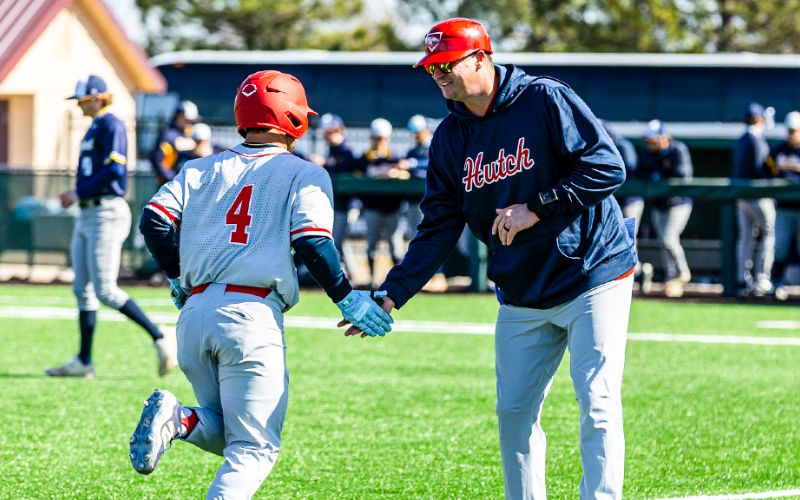 The No. 17 Hutchinson Community College baseball team swept the Highland Scotties Monday at Hobart-Detter Field, marking head coach Brock Nehls’ 100th Blue Dragon victory in the game one run-rule win.