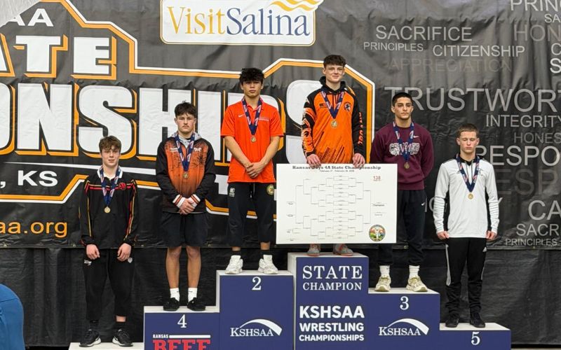 Nickerson senior 165-pounder Kris Monroe placed third in the 165-pound weight class at the Kansas Class 4A boys state tournament Saturday at Salina’s Tony’s Pizza Events Center.