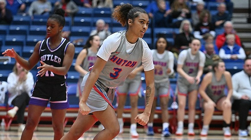 HUTCHINSON, Kan. (BlueDragonSports.com) – All-time victory No. 1,100 in Hutchinson Community College women’s basketball history saw the No. 1-ranked Blue Dragons rally from down 10 points in the first half and a seven-point halftime deficit to defeat the 21st-ranked Butler Grizzlies on Saturday at the Sports Arena.