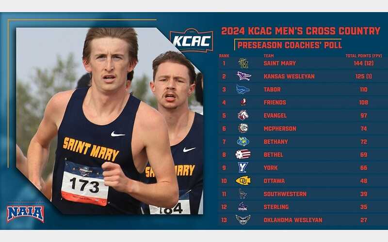 WICHITA, Kan. (KCACSports.com) — The University of Saint Mary earned the top spot in the 2024 Kansas Collegiate Athletic Conference (KCAC) Men’s Cross Country Preseason Coaches’ Poll, the conference office announced Wednesday.