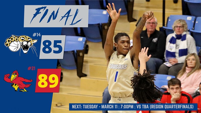 The Cougars conclude the regular season third in the KJCCC standings at 17-7 and 23-7 overall while Coffeyville takes second place at 18-6 improving to 22-8 on the season.