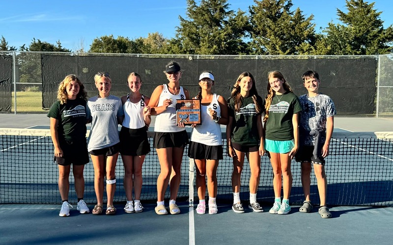 Sterling’s Jaiden Jaeger and Danika Zimmerman also qualified for state by reaching the doubles semifinals. They placed second, losing to Ellsworth’s Reygan Coonrod and Inarie Rippert 6-2, 6-1 in the championship. Jaeger and Zimmerman won their semifinal match.