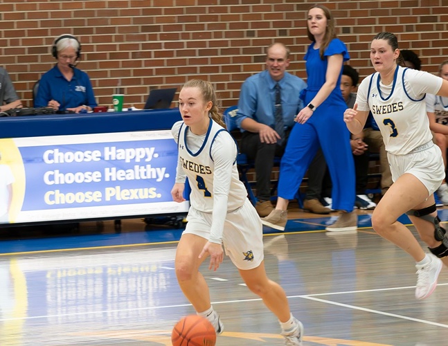 The final period would start slow as the Swedes would score the only points in the first 2 and a half minutes to even up the score at 43. After trading a couple of baskets, Kansas Wesleyan would nab the lead with a three-pointer that would ultimately give them the lead for good. The Swedes would continue to fight until the very end as Kisa Unruh‘s three-point attempt would miss after the final buzzer resulting in the Swedes falling to the Coyotes 57-56.