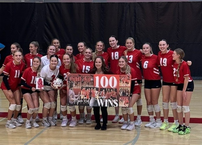 HOISINGTON, Kan. - Hoisington High School celebrated Head Volleyball Coach Mykela Riedl's milestone mark of 100 coaching wins.The milestone happened in Hoisington's win over Haven Tuesday, Sept. 9, but the school shared the celebration of Riedl's milestone following a triangular on Tuesday, Sept. 16.Riedl led... Read More.