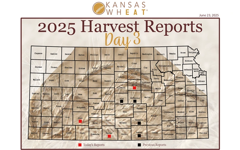 This is day 3 of the Kansas Wheat Harvest Reports, brought to you by the Kansas Wheat Commission, Kansas Association of Wheat Growers, Kansas Grain and Feed Association and the Kansas Cooperative Council.     Harvest is finally in full swing across much of southern and central... Read More.