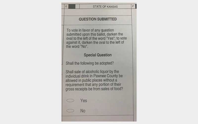 PAWNEE COUNTY, Kan. — A Liquor by the Drink Ballot Question will appear on the backside of this year's Pawnee County General Election Ballot on Nov. 5, 2024.Pawnee County Attorney Douglas W. McNett shared that all licensed drinking establishments in Pawnee County that offer... Read More.