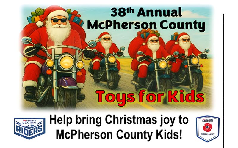 December 15th to 20th: Toy Distribution: The Legion Auxiliary will be distributing gifts to families in need as part of the McPherson County Angel Tree Christmas Project.