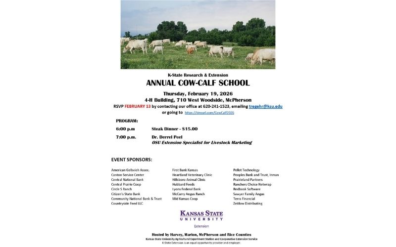 The K-State Research & Extension Annual Cow-Calf School will be held on Thursday, February 19.