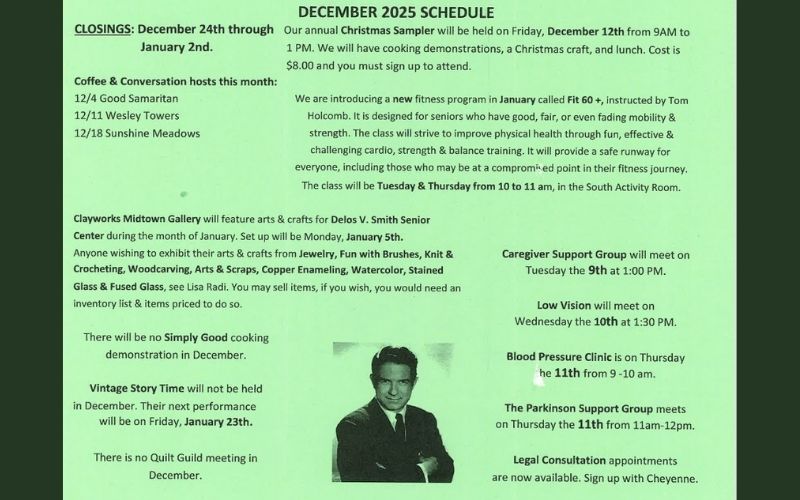 Check out the upcoming events at the Delos V. Smith Senior Center for the month of December!