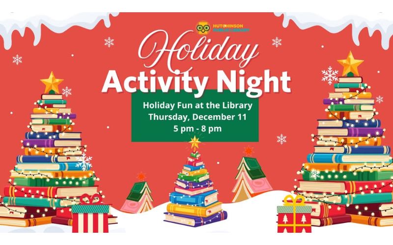 The library will come alive with festive activities from 5 PM – 8 PM, including hot cocoa and activities throughout the library, including Bad Art Night, Read to Rover, crafts, games, and more!