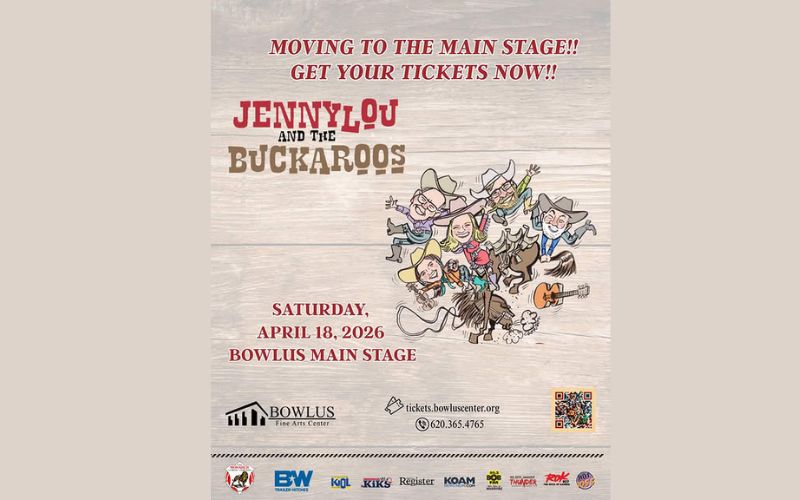 Jennylou and The Buckaroos are bringing their high-energy mix of bluegrass, country, and cowboy charm to the Bowlus Main Stage on Saturday, April 18 at 7 PM!