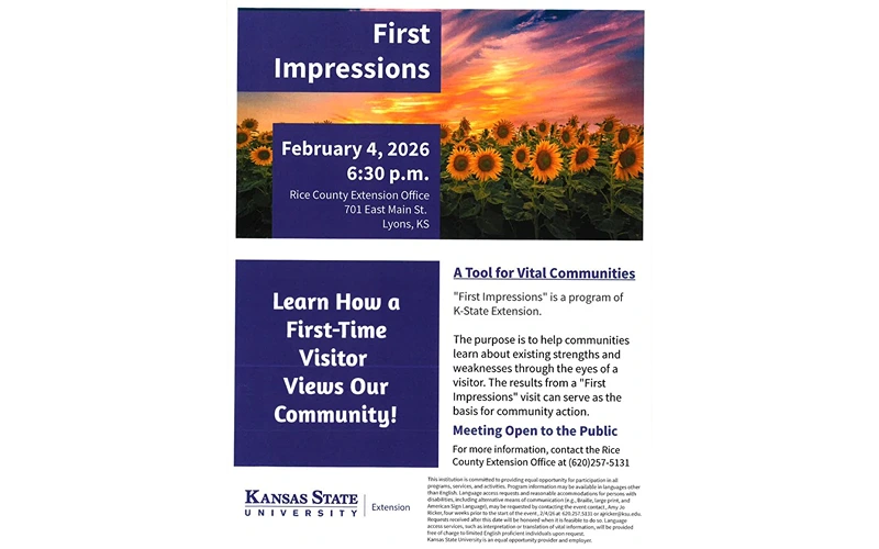 For more information, contact the Rice County Extension Office at (620) 257-5131