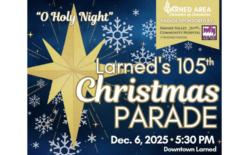 Since the year is already flying by, save the date and theme for our 105th Annual Larned Christmas Parade on Saturday, December 6th at 5:30pm. We are switching it up a bit this year and doing a night parade to show off the beautiful new light poles and decorations along Broadway. Help us light up the night and make plans to participate! Register online at www.larnedks.org/parade-