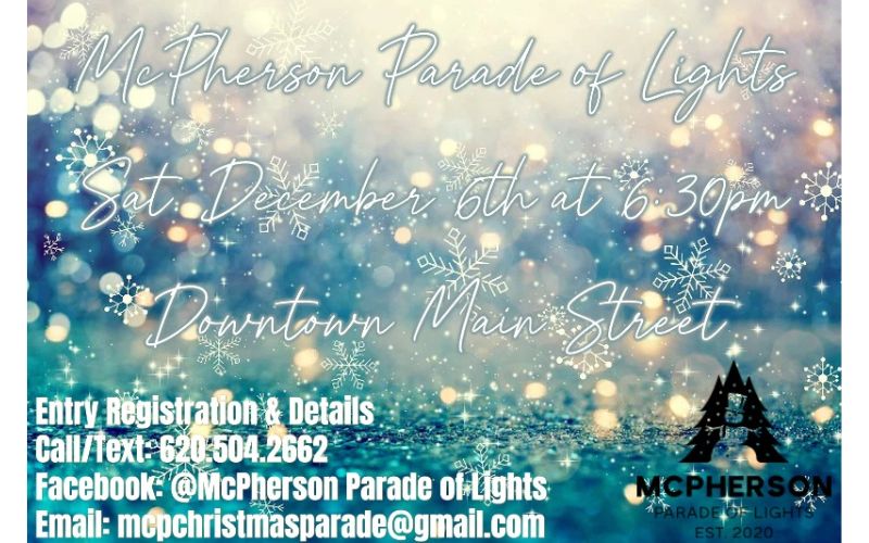 For entries and event information, call/text 620-504-2662, email at [email protected], or follow them on the McPherson’s Christmas Parade of Lights Facebook page for more details.