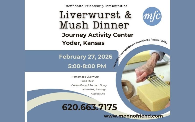Mennonite Friendship Communities is hosting its Annual Liverwurst & Mush Dinner on Friday, February 27th, from 5 to 8 at Journey Activity Center.