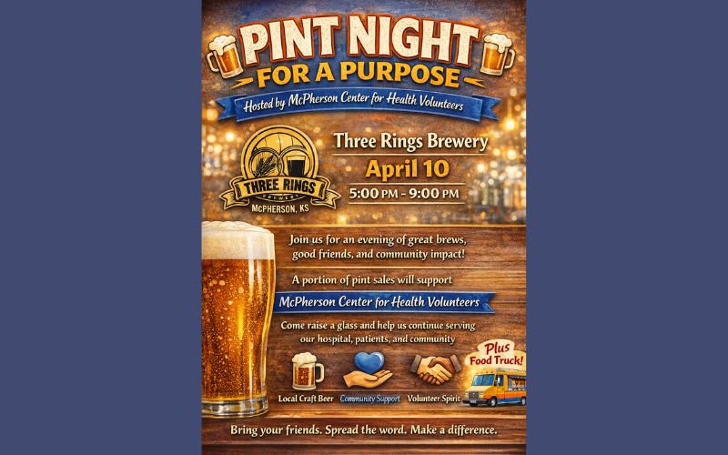 McPherson Center for Health Volunteers are hosting Pint Night for a Purpose on Friday, April 10 from 5 to 9 p.m.