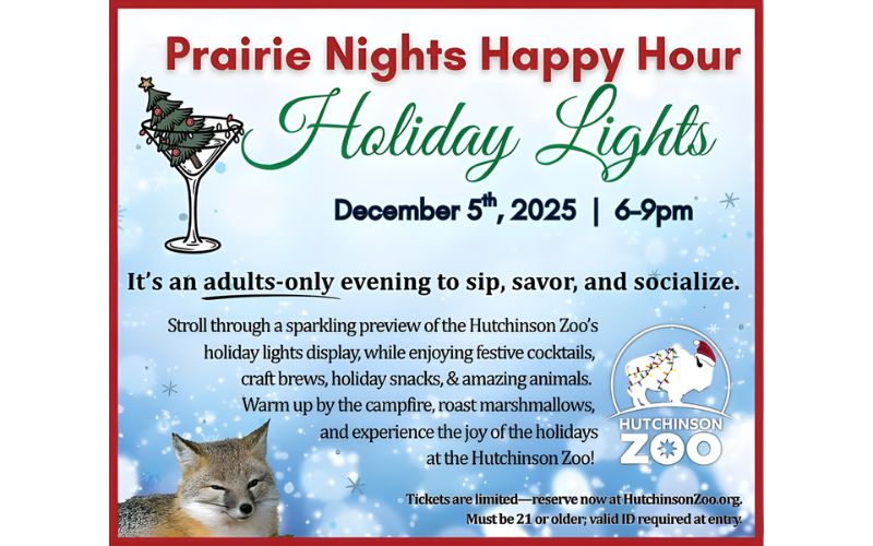 Start the annual Light Up Hutch holiday weekend with Prairie Nights Happy Hour at the Hutchinson Zoo on Friday,