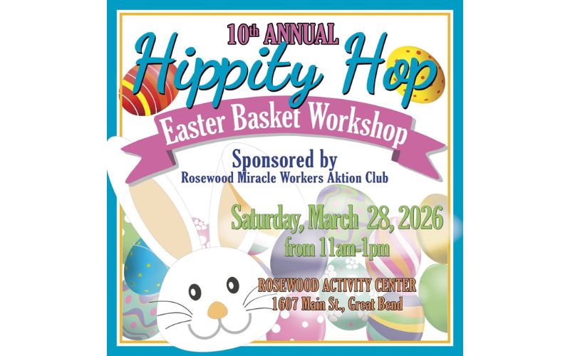 Rosewood Miracle Workers AKTION Club is hosting the 10th Annual “Hippity Hop Easter Basket Workshop” on March 28 from 11 a.m. to 1 p.m. at the Rosewood Activity Center, 1607 Main Street, Great Bend, adjacent to Rosewood Gallery.