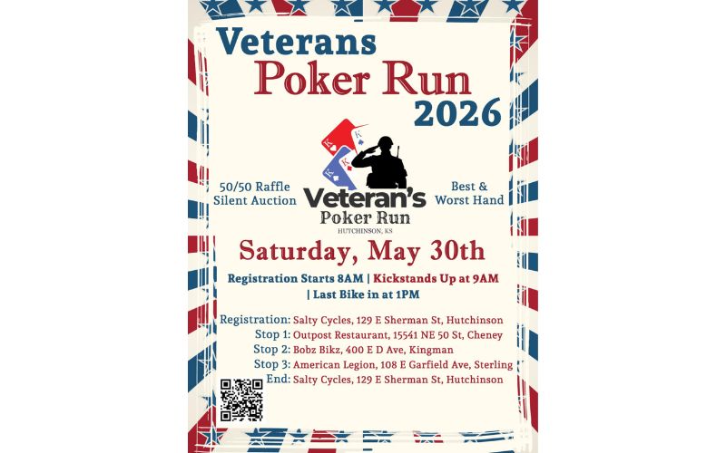 Join the 2026 Veterans Poker Run on Saturday, May 30th! Registration starts at 8 a.m. Kickstands Up at 9. Last Bike in at 1 p.m.